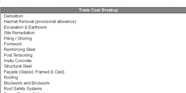 Detailed measurement using Costx, Cubit, or clients' preferred software. We can offer 5D modeling if 3D models are available